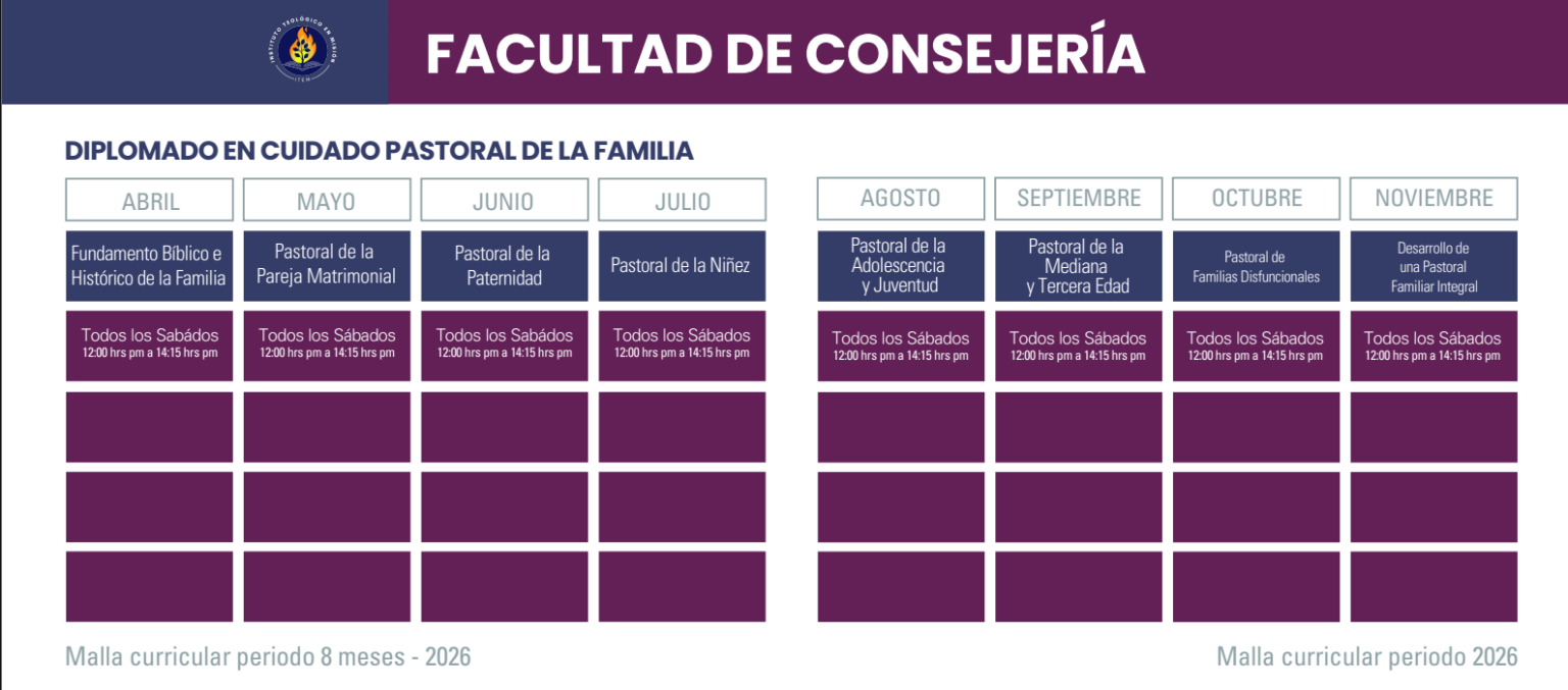 - Fundamentación Bíblica y Evolutiva: Se dedica al estudio de las bases históricas de la familia y el desarrollo humano a través de las diferentes etapas de la vida (niñez, juventud, mediana y tercera edad).