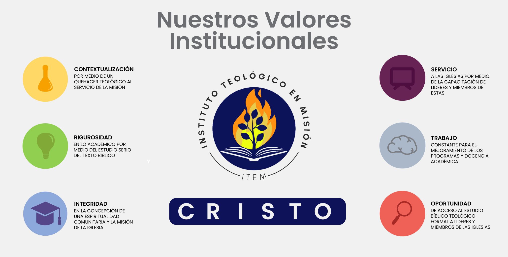 ITEM es una institución de educación superior teológica arraigada en el sur de Chile que se define por su compromiso con la rigurosidad bíblica y la pertinencia contextual. Nos distinguimos por articular la tradición cristiana con los desafíos contemporáneos, ofreciendo una formación integral y accesible que profesionaliza el liderazgo eclesial para una misión transformadora.